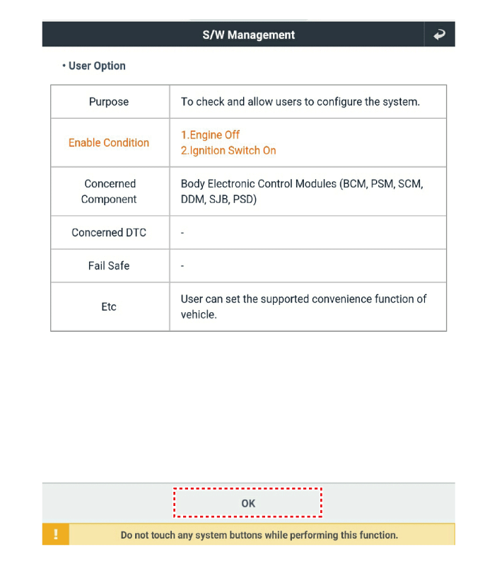 Выберите «Модель автомобиля» и «Интегрированный блок управления кузовным оборудованием (IBU)», чтобы быть проверенным для того, чтобы проверить автомобиль с помощью тестера.