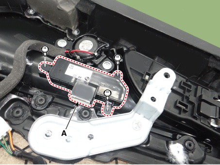 Снимите встроенный переключатель сиденья с памятью (A) после ослабления крепежных винтов.