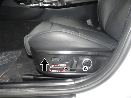 Прежде чем снимать сиденье водителя в сборе, потяните его вверх до упора. максимум, нажав переключатель регулировки высоты переднего сиденья (A).