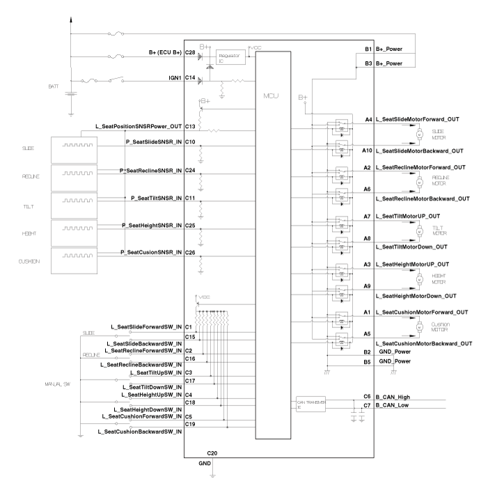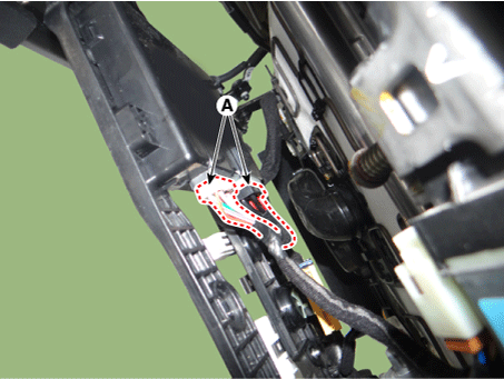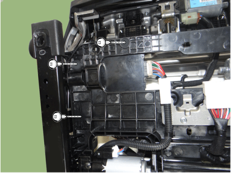 Снимите встроенный модуль сиденья с памятью (A), предварительно ослабив крепление. винты.