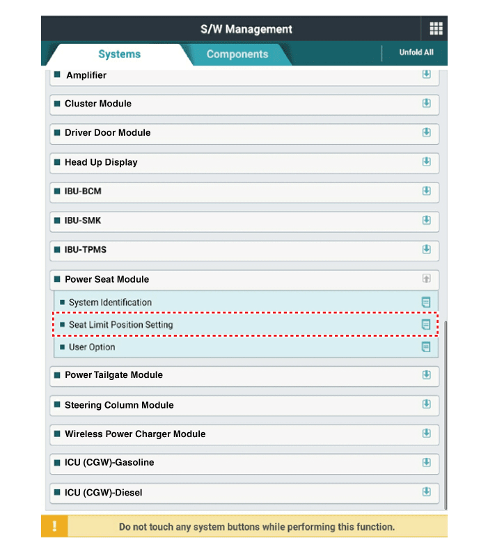 Выполните настройку крайнего положения сиденья с помощью KDS.