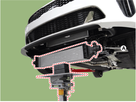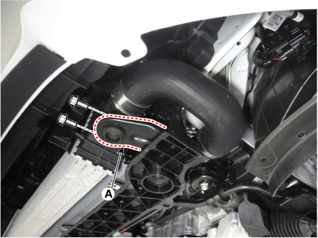 Снимите нижний монтажный кронштейн промежуточного охладителя (А).