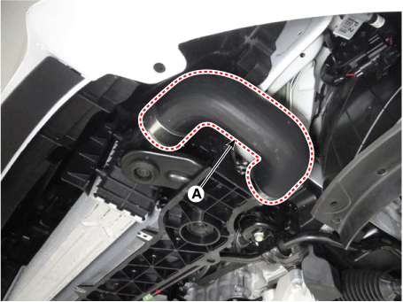 Отсоедините впускной шланг промежуточного охладителя (А).