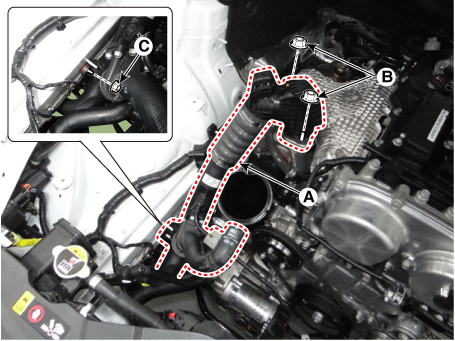 Снимите впускной шланг и трубку промежуточного охладителя в сборе (А).