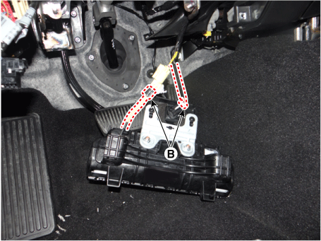 Ослабьте гайки (А) и отсоедините разъем (В).