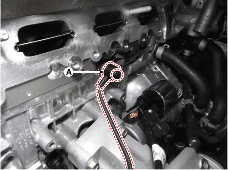Снимите датчик детонации (А), предварительно ослабив крепежный болт.