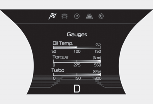 В этом режиме отображаются Gauge, Lap Timer, G-Force.