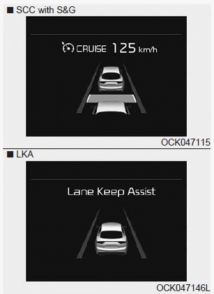 В этом режиме отображается состояние интеллектуального круиз-контроля (SCC) и удержания в полосе движения. Ассистент (LKA).