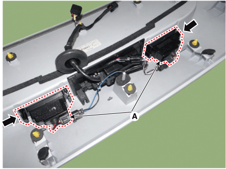 Снимите номерной фонарь (А), нажав на стопорный штифт.