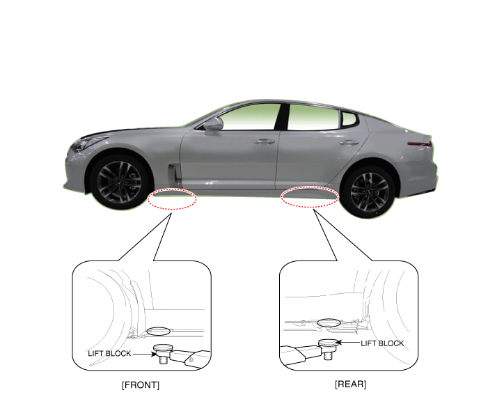 Когда тяжелые задние компоненты, такие как подвеска, топливный бак, запасное колесо, задняя дверь и крышка багажника должны быть сняты, поместите дополнительный груз в багажное отделение перед подъемом. Когда субстатический вес удаляется с задней части автомобиля, центр тяжести может измениться, что может привести к транспортное средство опрокинуться вперед на подъемнике. |