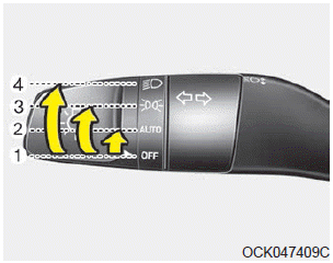 Для управления освещением поверните ручку на конце рычага управления в одно из
