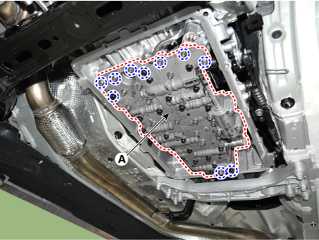 Снимите сливную пробку ATF (A), дайте жидкости стечь, а затем переустановите сливную пробку.