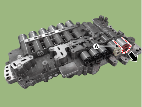 Снимите электромагнитный клапан управления давлением в линии (А).