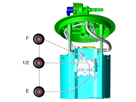 С помощью омметра измерьте сопротивление между выводами 1 и 2 разъем датчика (A) на каждом уровне поплавка.