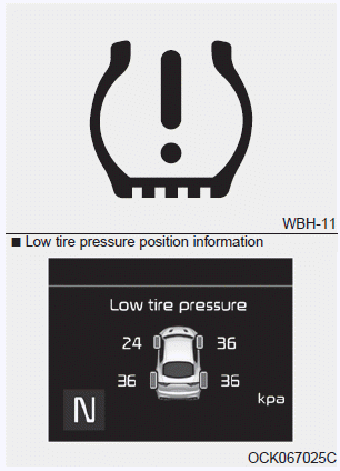 Когда загораются предупреждающие индикаторы системы контроля давления в шинах, давление в одной или нескольких шинах значительно ниже нормы.