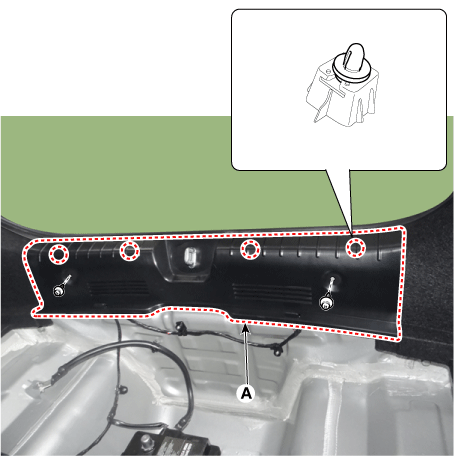 Отделите боковую обшивку багажника (А) после ослабления крепежных винтов.