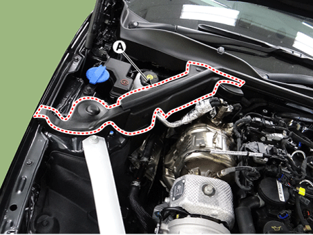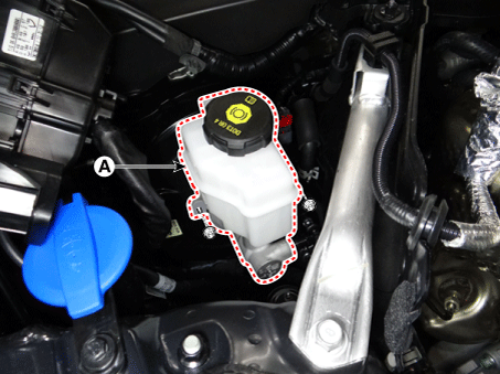 Отсоедините разъем датчика уровня тормозной жидкости (А). |