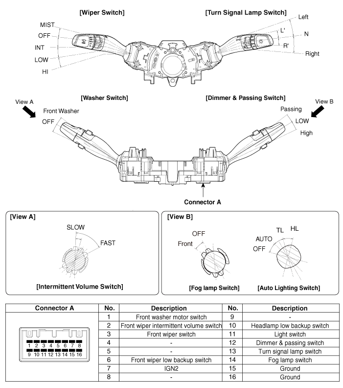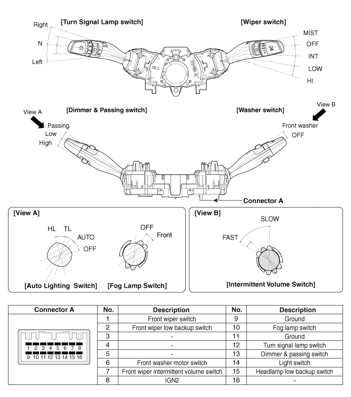 Проверьте целостность цепи между клеммами в каждом положении переключателя, как указано ниже. показано ниже.