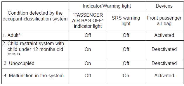 *4 Индикатор PASSENGER AIR BAG «OFF» может включаться или выключаться, когда ребенок старше 12 лет