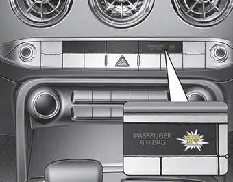 Не кладите ничего перед индикатором отключения подушки безопасности пассажира.