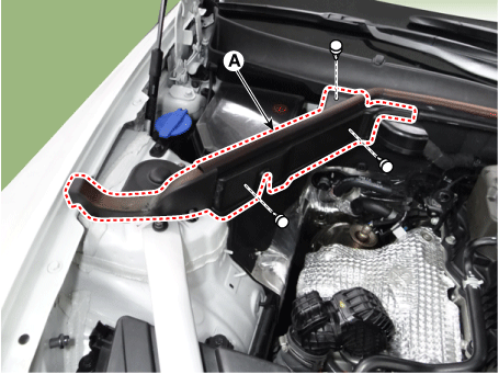 Снимите уплотнительную крышку левого капота (А).