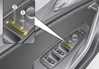 При нажатии на левую часть (2) переключателя все двери автомобиля открываются.
