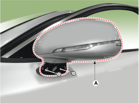 Отделите наружное зеркало заднего вида (А) после ослабления крепления винт.