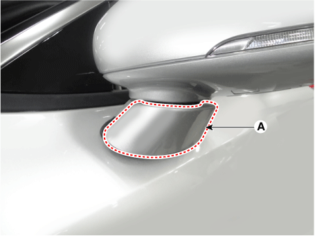 Снимите крышку крепления наружного зеркала заднего вида (А).