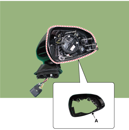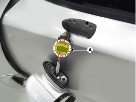 Снимите наружное зеркало заднего вида после отсоединения разъема (А).