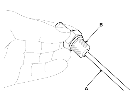 Вставьте тонкую палочку (А) в клапан PCV (В) со стороны с резьбой. проверить движение плунжера.