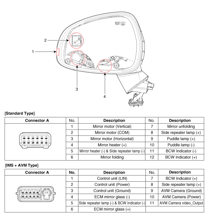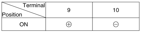 Подайте напряжение батареи на каждую клемму, как показано в таблице, и проверьте что зеркало работает нормально. [Управление зеркалом (левый/правый)]