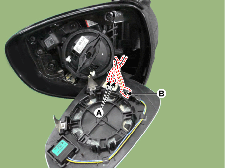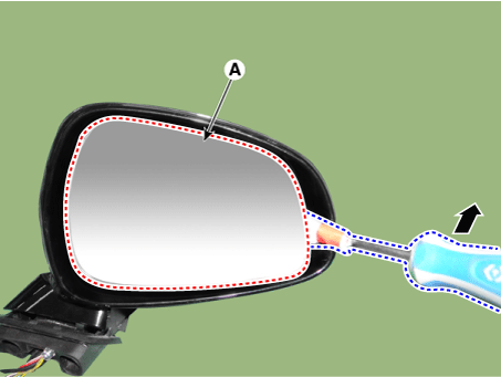 Вставив плоскую отвертку или съемник, как показано на изображении ниже, снимите зеркало (A), приложив кратковременное усилие.