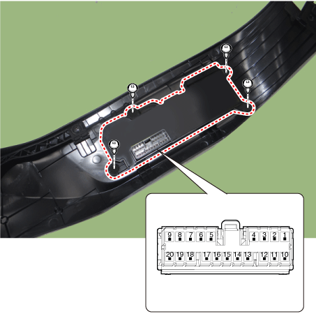 Снимите переключатель управления сиденьем с электроприводом (А), предварительно ослабив крепление. винты.