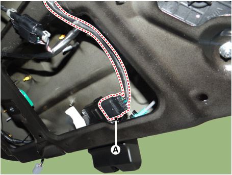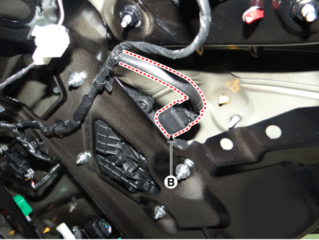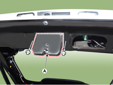 Отсоедините разъем замка двери багажного отделения с электроприводом (A) и блок закрывания с электроприводом. соединитель (В).