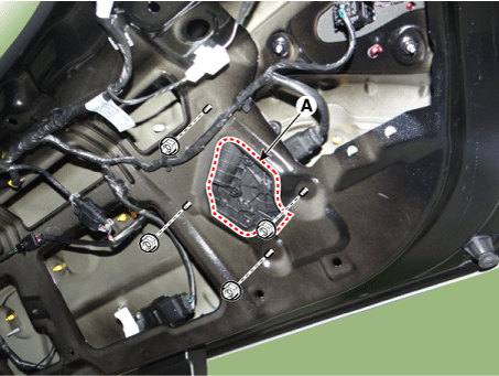 Снимите обшивку задней двери. (См. Кузов — «Отделка задней двери») |