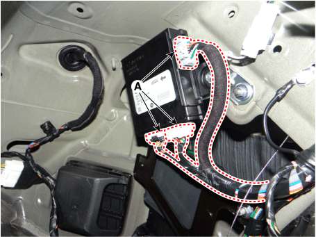 Отсоедините разъемы модуля задней двери с электроприводом (А).