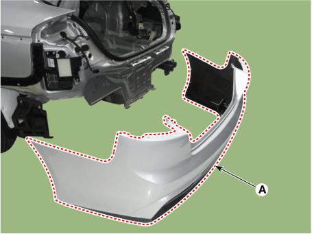 Снимите нижнюю часть заднего бампера (А) после ослабления крепления. гайки и клипсы.