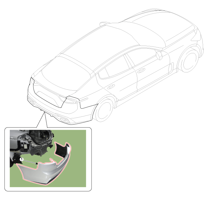 Отделите сторону бампера (А) после ослабления крепежных винтов и клип.