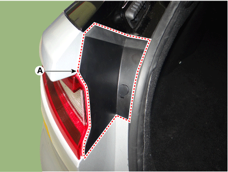 Снимите боковую обшивку багажника после отсоединения разъема фонаря багажного отделения. (А).