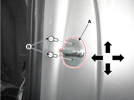 Удерживая внешнюю ручку, прижмите дверцу к кузову, чтобы убедиться, что ударник допускает посадку заподлицо. Если дверца правильно защелкнулась, затяните винты и перепроверьте. |