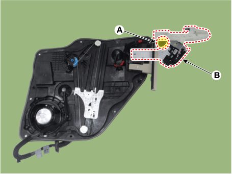 Снимите защелку задней двери (B) после отсоединения разъема защелки. (А).
