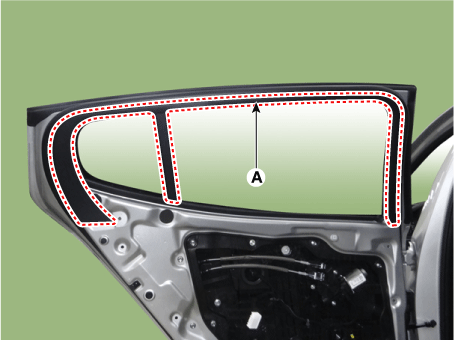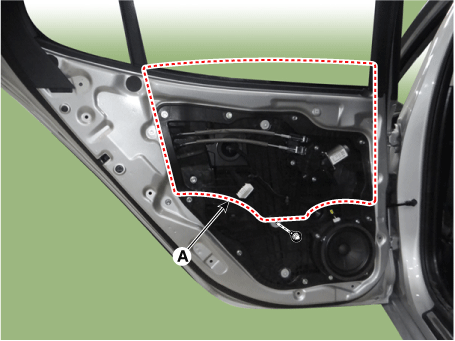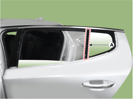 Снимите заглушку отверстия крепления стекла задней двери (А).