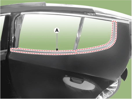 Снимите молдинг рамы задней двери (А) с помощью съемника.