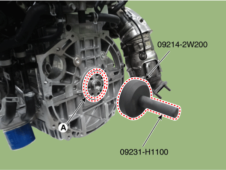 Используя SST (09214 - 2W200, 09214-3K100) (B) и молоток, постучите