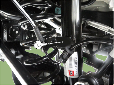 Ослабьте болт датчика скорости заднего колеса и снимите заднее колесо. датчик скорости.