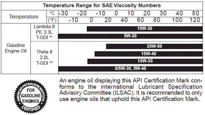 *1 : Для лучшей экономии топлива рекомендуется использовать моторное масло с вязкостью