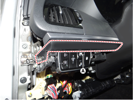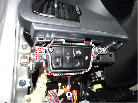 Снимите выключатель бокового аварийного щитка (А) после ослабления крепежных винтов.