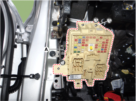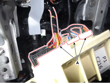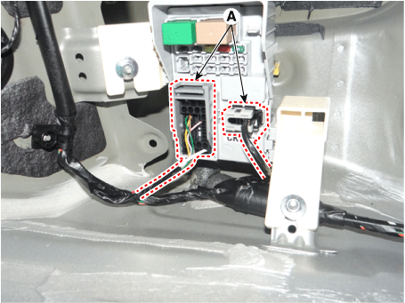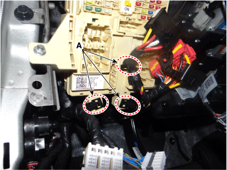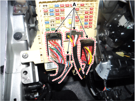 Отсоедините разъемы (A) со стороны предохранителей встроенной центральной блок управления (БИТ).