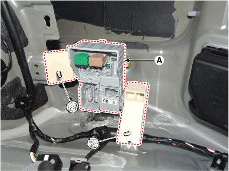 Снимите встроенный центральный блок управления (ICU) (A) после ослабления монтажные гайки.