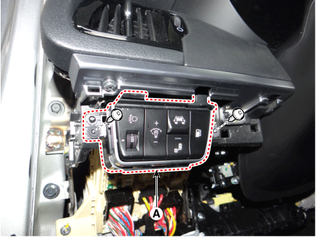Снимите выключатель бокового аварийного щитка (А) после ослабления крепежных винтов.